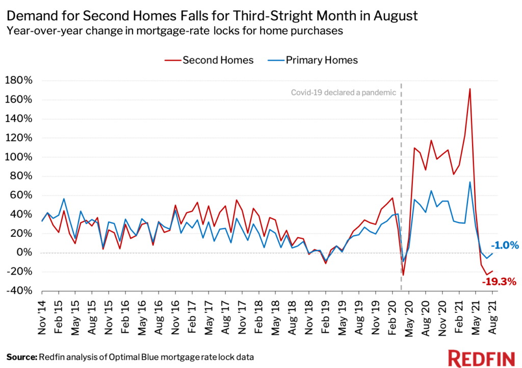 Brad Beckett posted: "We have had several posts over the past couple years about the growing demand for second homes. However, a recent report from Redfin says demand those homes dropped 19.3% year over year in August, marking the third-straight month of declines. However, t"