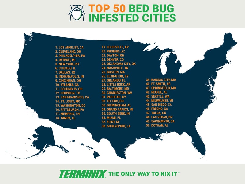 Brad Beckett posted: "With Fall finally here and Halloween just around the corner, Terminix has released their list of the top 50 bed big cities in America, for 2021. They remind us that bed bugs spread easily by hitching rides on luggage, backpacks and clothing, and can even"