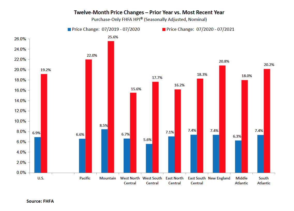 Brad Beckett posted: "According to the latest Federal Housing Finance Agency's (FHFA) House Price Index (HPI), U.S. house prices were up 1.4% in July and up 19.2% from July, 2020. The FHFA produces the nation's only public, freely available house price indexes (HPIs) that mea"