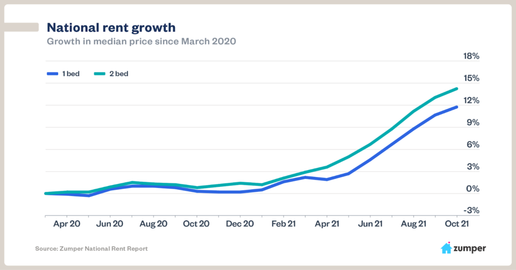 Brad Beckett posted: "Rental information site Zumper recently released their latest monthly National Rent Report showing that their median national rent for 1-bedroom apartments in October, 2021 was up 11.8% and the median two-bedroom rent was up 14.3%, since March, 2020. Be "