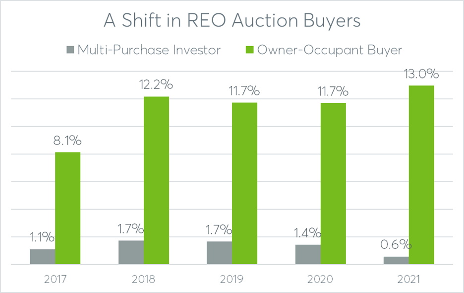 Brad Beckett posted: "According to Auction.com's Daren Blomquist, most REO auction buyers in 2021 were owner-occupants or local community developers. Of those buyers, 99% purchased five or fewer properties with 74% of those properties being located within 100 miles of where "