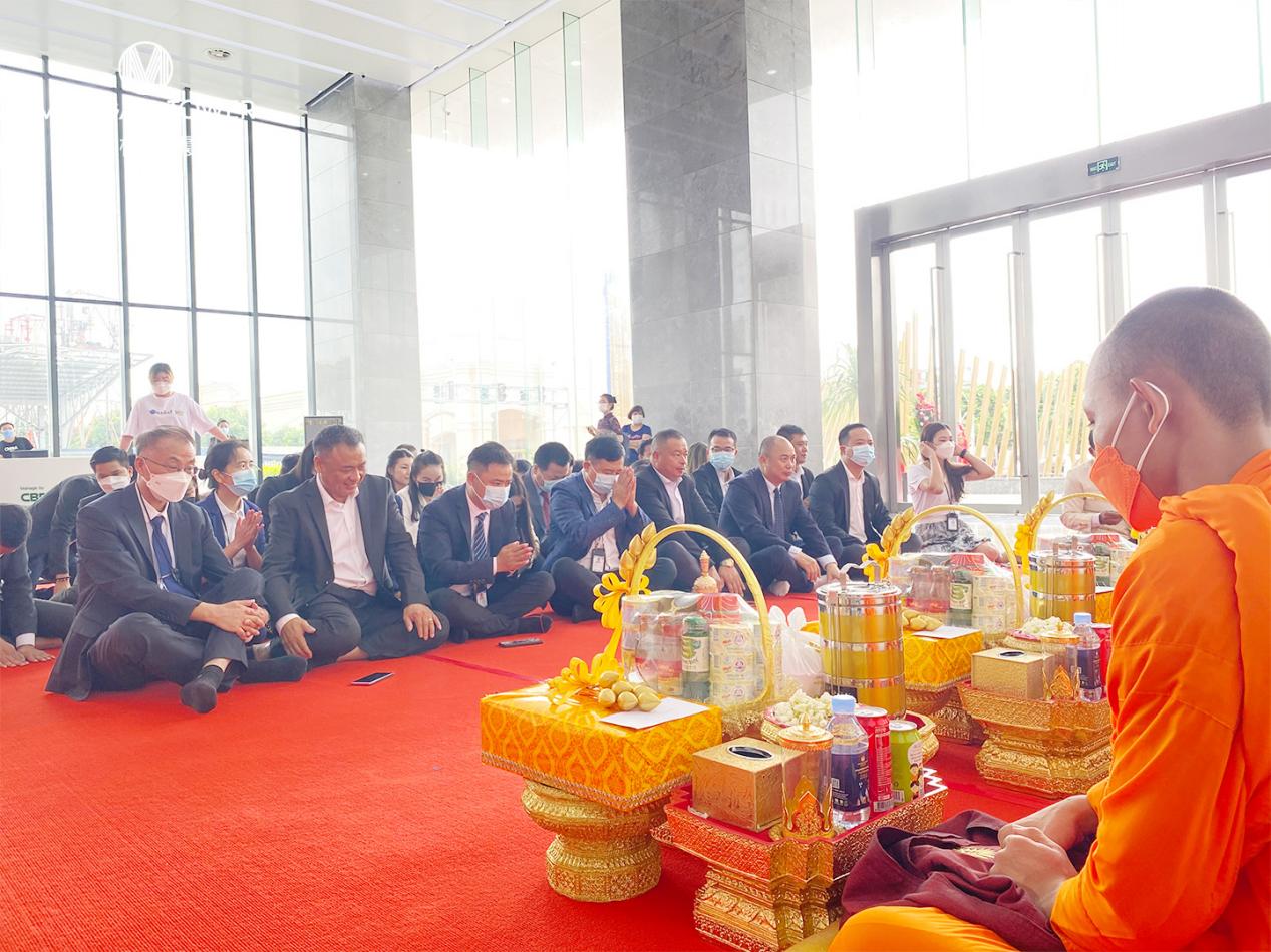 At 8:00 a.m. the completion prayer ceremony presided over by Cambodian senior monks was solemnly held at Morgan Tower, with senior monks sprinkling holy water, and chanting. The atmosphere of the blessing ceremony was solemn, and the company leaders led all the staff to pray for the successful completion of the building, and may the facility have a bright future!