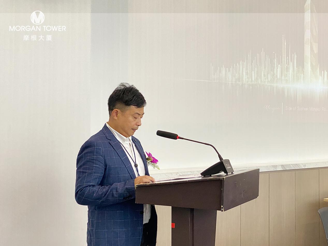 Mr. Ding Yongjun, Chairman of Morgan Group, delivered a speech for the completion of the building and expressed his sincere gratitude to the owners and corporate partners who have long paid attention to and supported Morgan Tower and expressed his sincere appreciation for Morgan Tower as a Cambodian city the future of the commercial landmark has high expectations.