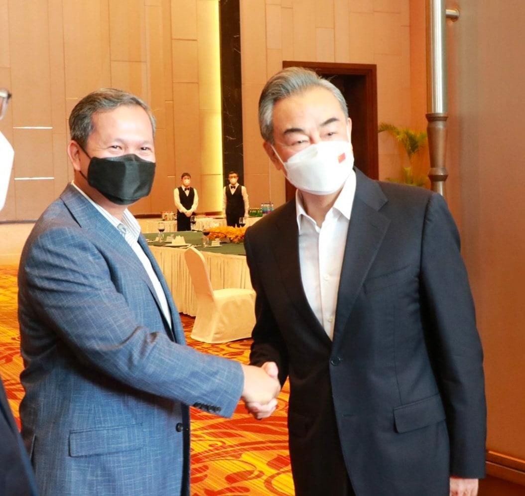 ភ្នំពេញ៖ លោក ហ៊ុន ម៉ាណែត អគ្គមេបញ្ជាការរងកងយោធពលខេមរភូមិន្ទ និងជាមេបញ្ជាការកងទ័ពជើងគោក នៅសៀលថ្ងៃទី០៣ ខែសីហា ឆ្នាំ២០២២នេះ បានទទួលជួបពិភាក្សាការងារជាមួយ លោក វ៉ាង យី ទីប្រឹក្សារដ្ឋ និងជារដ្ឋមន្ដ្រីការបរទេស នៃសាធារណរដ្ឋប្រជាមានិតចិន ដែលកំពុងបំពេញទស្សនកិច្ចនៅកម្ពុជា។